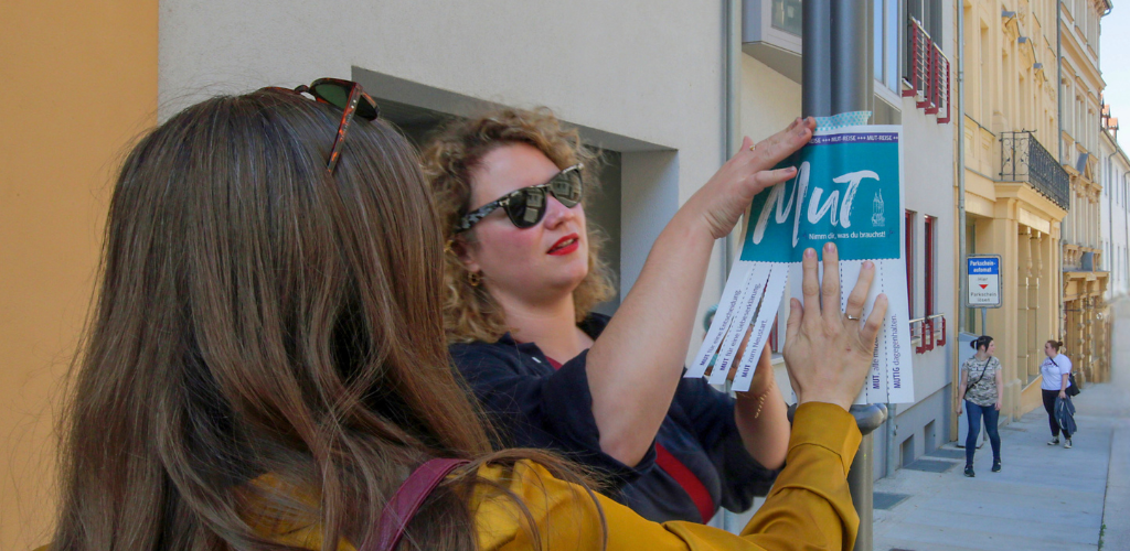 Alle, die einmal mit uns auf MUT-Reise waren, kennen ihn schon: Unseren MUT zum Mitnehmen. Hier gibt’s nun die Druckvorlage, damit ihr jederzeit Mut teilen oder selber auftanken könnt. Einfach ausdrucken, einschneiden und an einem Ort eurer Wahl aufhängen. Egal, ob ihr ihn im Büro, in eurem Dorf, auf einer Party oder unterwegs aufhängt: Wir freuen uns über eure Fotos und Markierungen auf Instagram @opentransfer!