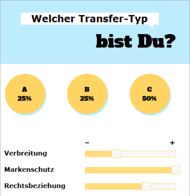 Der Transfer-o-mat! Finden Sie heraus, welche Transfermethode zu Ihnen passt. Bestimmen Sie per Schieberegler, welche Aspekte Ihnen bei der Verbreitung Ihrer sozialen Idee besonders wichtig sind. Der Transfer-o-mat sagt Ihnen dann, welche Methode für Sie die richtige ist. Mehr